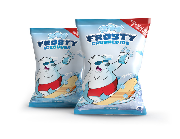 Crushed Ice und Eiswürfel in 2kg Beutel